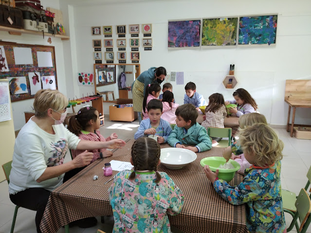 Teníem una bona excusa per tornar a muntar un taller de cuina a la classe. Per CARNAVAL, com ja és costum a l'escola, solem fer un festeret i torram sobrassada per berenar.